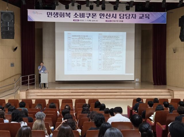 [파이낸셜경제=김영란 기자] 안산시는 전 시민을 대상으로 하는 ‘민생회복 소비쿠폰’의 원활한 운영과 시민 편의 증진을 위해 지난 17일 관내 25개 동 행정복지센터 담당 공무원 및 전담 인력 150여 명을 대상으로 실무 교육을 진행했다고 18일 밝혔다.