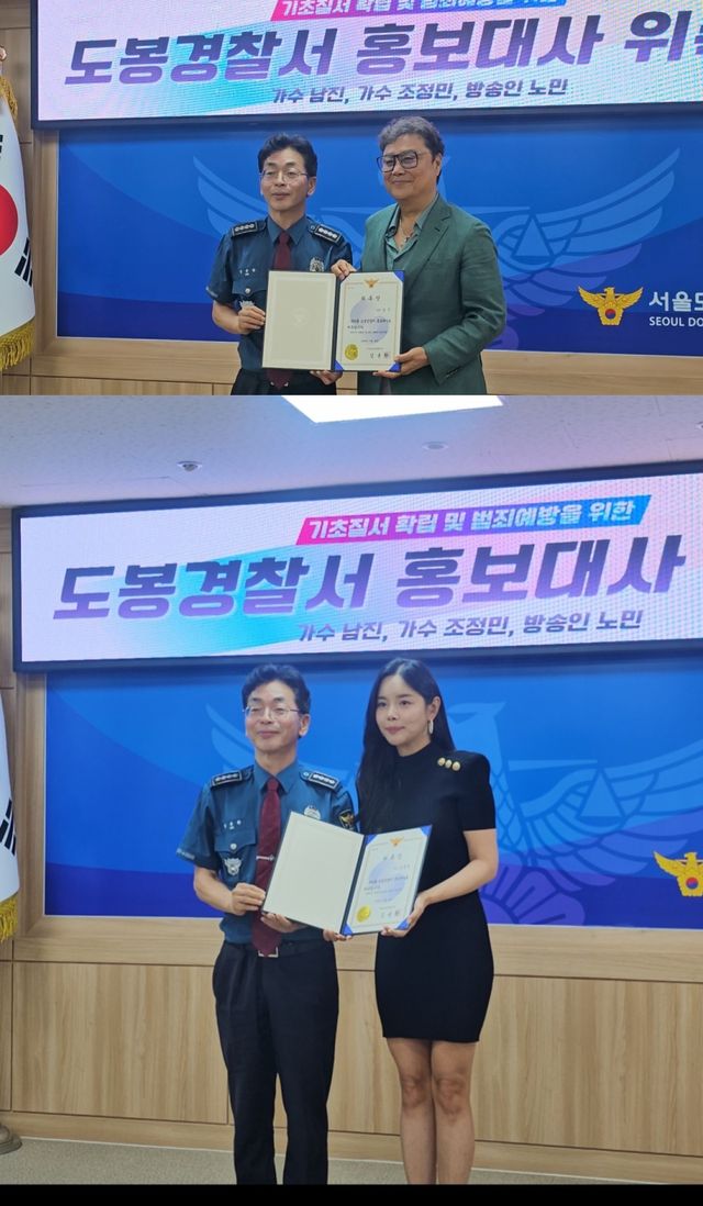 남진과 조정민은 도봉경찰서 홍보대사 위촉장을 수여받은 뒤 “나라와 국민을 위해 힘써주시는 경찰 여러분께 진심으로 감사드린다”고 소감을 밝혔다.