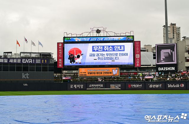 KT 구단은 18일 열린 2025 신한 SOL Bank KBO리그 한화 이글스와의 홈경기를 앞두고 "17일 중앙재난안전대책본부가 풍수해 위기경보를 '심각' 단계로 발령함에 따라, 수재민들의 아픔에 공감하고 조속한 피해 복구를 기원하는 마음으로 행사 취소를 결정했다"고 밝혔다.