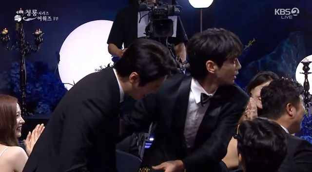 이어 전현무는 "이준영 씨도 인기스타가 맞습니다. 올해는 이준혁 씨가 일등스타였다. 발음을 정확히 했어야 하는데. 저는 왜 갑자기 이준영 씨가 나오나 했는데요. 이준혁 씨였습니다"라고 설명했다. 이준영은 무대 아래로 내려가 이준혁에게 직접 트로피를 전했다.