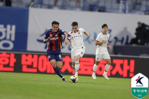 18일 오후 7시 30분 수원종합운동장에서 하나은행 K리그1 2025 22라운드를 치른 수원FC가 광주FC에 2-1로 역전승했다.