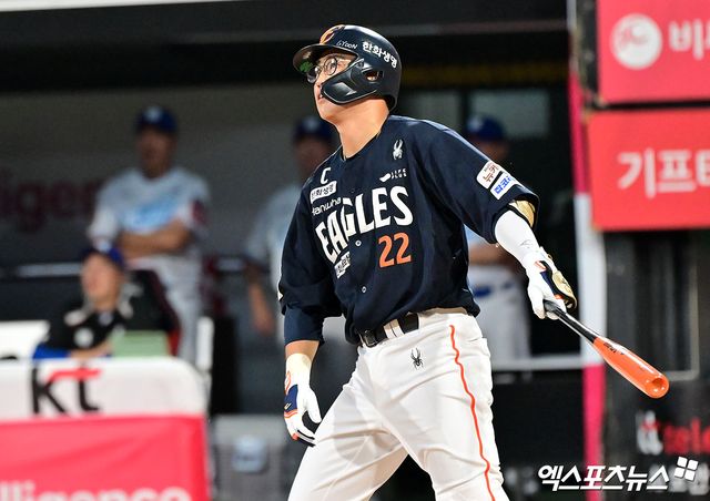 한화가 2-0으로 앞선 3회초, 노시환이 2루타를 치고 나간 2사 2루 상황에서는 볼카운트 2볼에서 3구 체인지업을 받아쳐 좌전 적시타를 만들어냈고, 2루에 있던 노시환을 불러들였다.