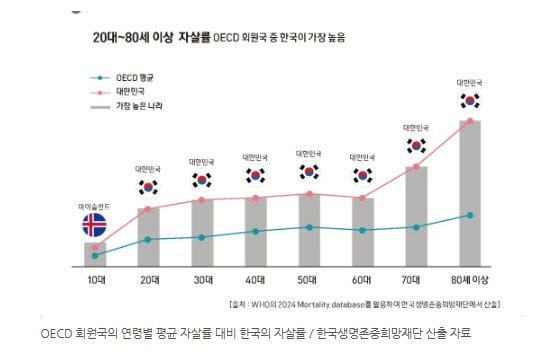 생보사회공헌재단이 이런 프로그램을 지원하고 있는 이유는 우리나라가 노인 자살률 OCED 1위 국가이기 때문이다. 2022년 기준 80세 이상 67.4명, 70대 46.2명(인구 10만 명당)으로 매우 심각한 수준이다.