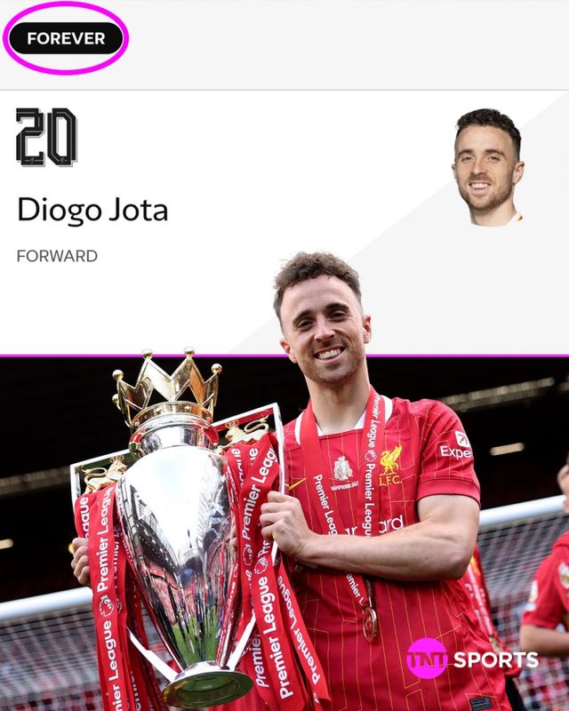 18일 리버풀 1군 선수단에서 'FOREVER' 포지션에 이름을 올린 조타. 사진=TNT스포츠 SNS
