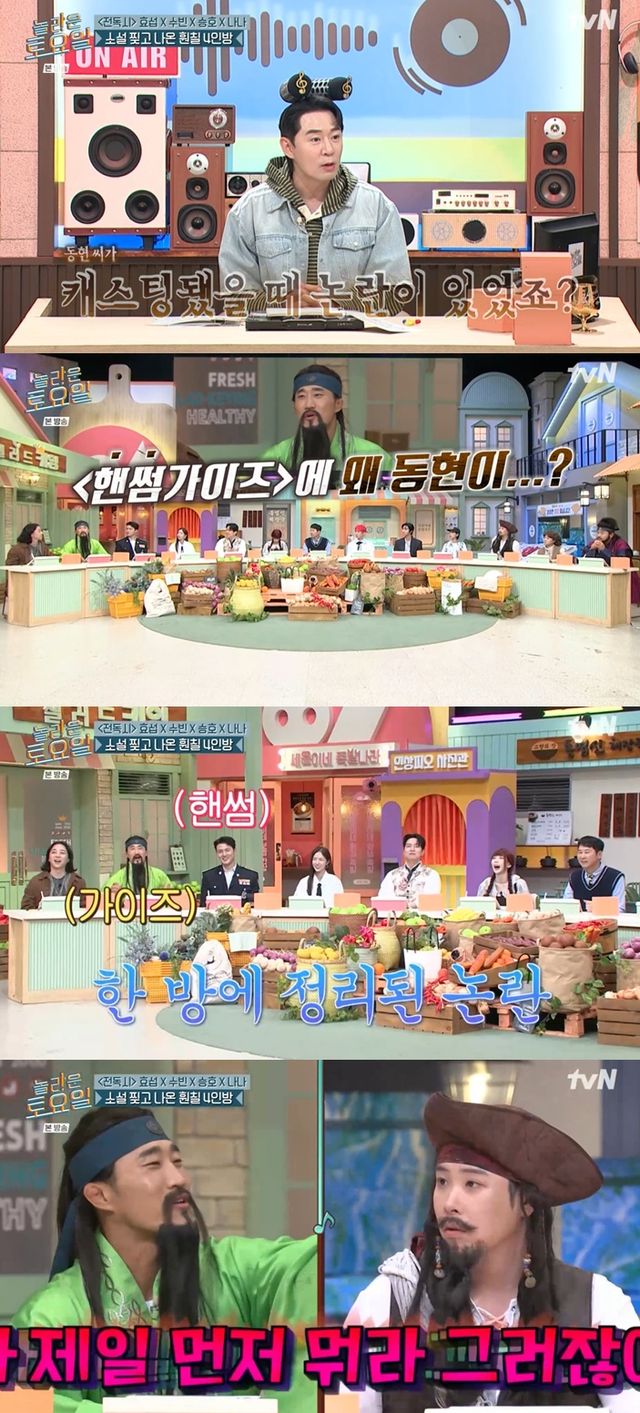 김동현은 "(신승호와) 친하다. '핸썸가이즈'에서 밥 먹으러 다닌다"고 예능을 함께하는 친분임을 어필했고, 붐은 "그때 ('핸썸가이즈') 캐스팅됐을 때 동현 씨가 논란이 있었지 않냐"며 물었다.