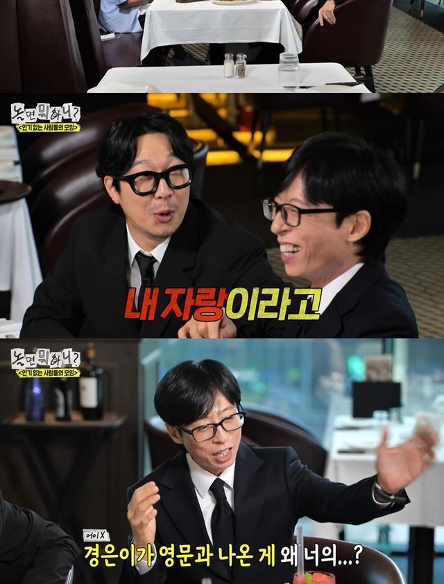 이에 유재석은 "경은이가 영문과 나온 게 왜 너의 (자랑이냐)"고 어이없는 기색을 드러냈다.