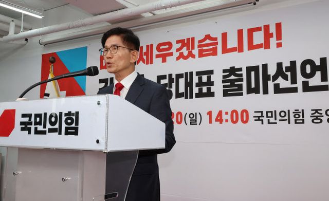 김 후보는 이날 오후 서울 여의도 국민의힘 당사에서 기자회견을 열고 “오늘, 비장한 심정으로 국민의힘 당대표 선거에 출마할 것을 선언한다”고 출마를 선언했다.