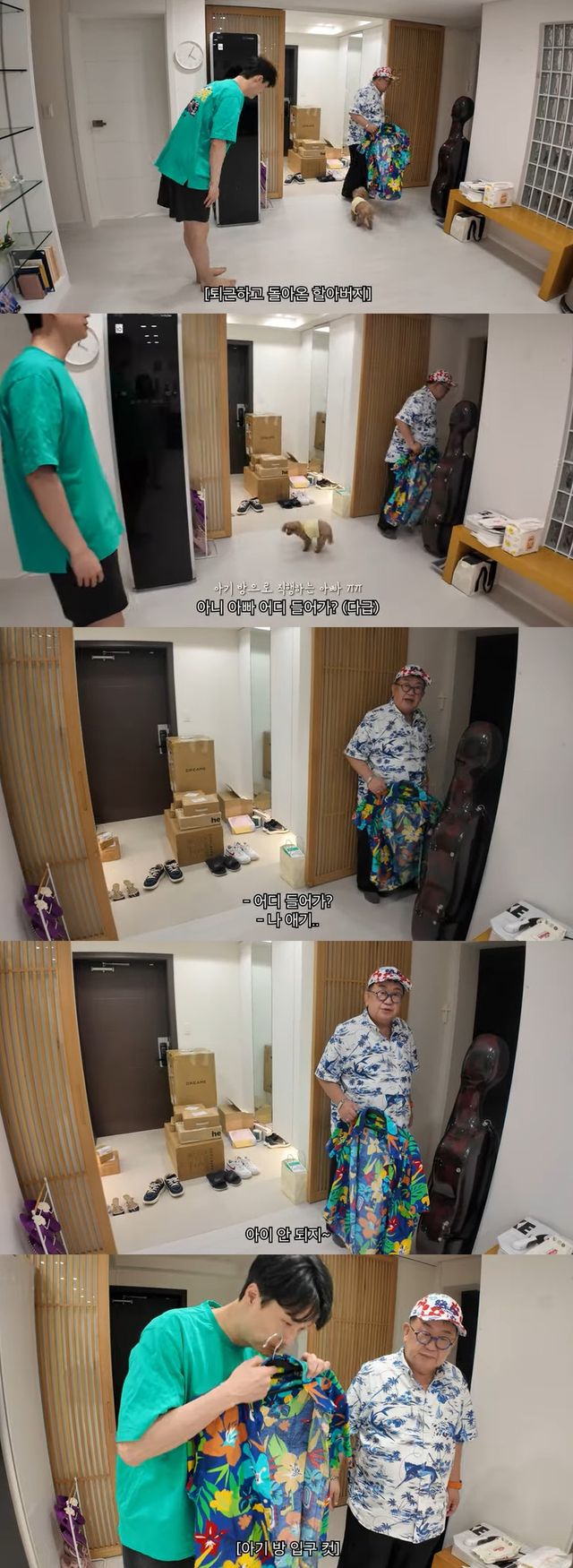 제지당한 이용식은 멋쩍은 얼굴로 거실에 들어왔고, 그의 손에 들려있던 셔츠 냄새를 맡은 사위 원혁은 "바쁜 하루를 보내셨군요"라며 너스레를 떨었다.
