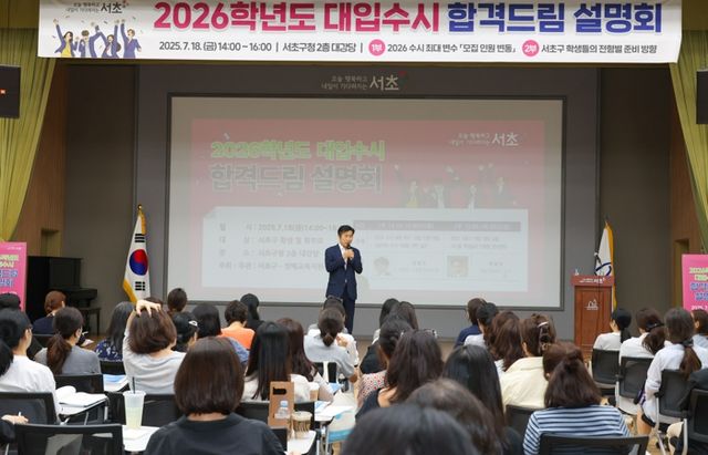 [파이낸셜경제=김영란 기자] 서울 서초구가 지난 18일 오후 2시 서초구청 2층 대강당에서 대입 수시전형 전략을 알려주는 ‘2026 대입 수시 합격드림 설명회’를 성황리에 개최했다고 밝혔다.