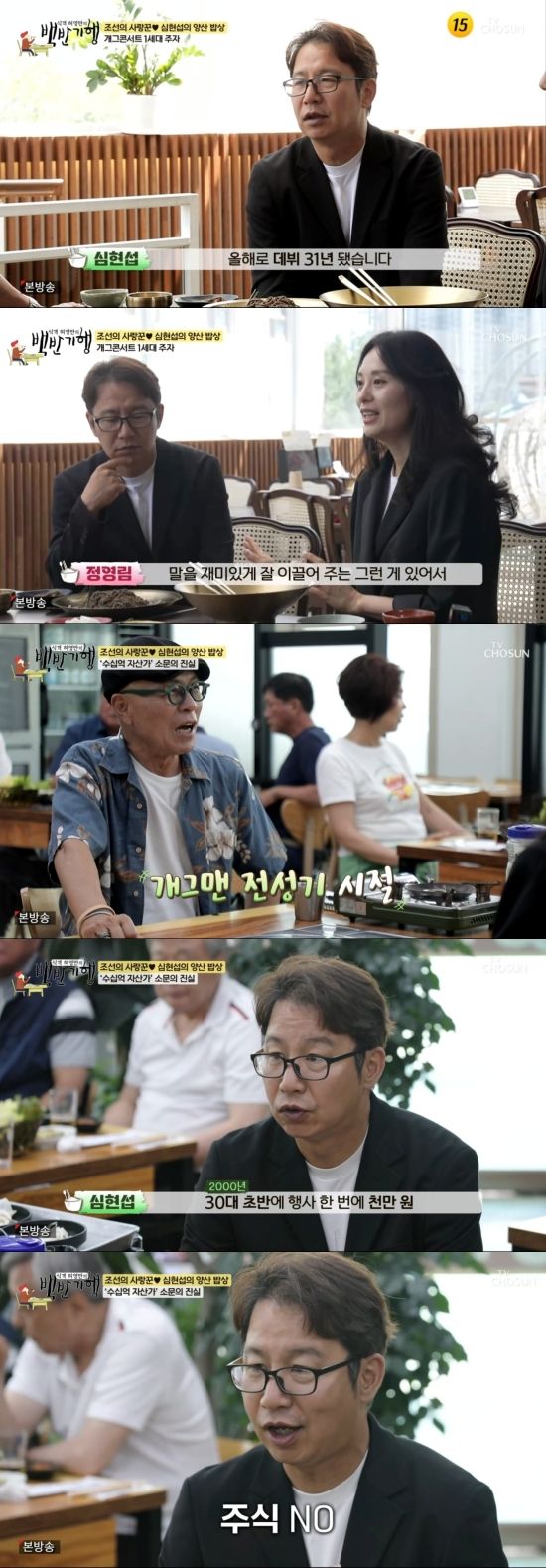 그런가 하면 이날 허영만은 심현섭의 전성기 시절 수입을 언급했고, 이에 심현섭을 둘러싼 '수십억 자산가' 소문에 대한 진실이 밝혀졌다.
