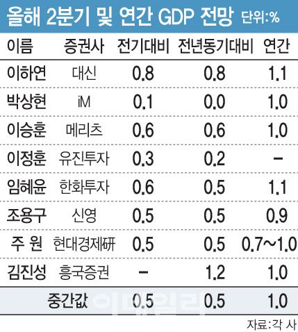 전문가들은 올해 연간 성장률을 1.0%로 전망했다. 이달 초 국회를 통과한 2차 추경이 향후 시차를 두고 국내 성장률에 긍정적인 영향을 줄 것으로 전망하면서도 트럼프 미국 정부의 관세정책은 여전한 불확실성 요소로 꼽았다.