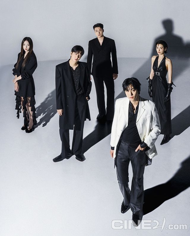 단체 컷에서 유일하게 화이트 수트를 착장한 안효섭이 프레임 전면에 단독으로 자리 잡고 이민호, 채수빈, 신승호, 나나는 블랙 스타일링으로 대비를 이루며 시선을 사로잡는다. 다섯 배우는 각기 다른 포즈와 시선으로 완성형 비주얼을 만들며 영화 속에서 이들이 선보일 각자만의 개성과 결말을 새로 써 내려가는 이들의 압도적인 케미스트리를 기대하게 만든다.