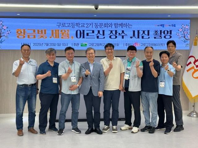 [파이낸셜경제=김영란 기자] 구로구가 지난 20일 구청 3층 창의홀에서 구로고등학교 2기 졸업생들과 함께 ‘황금빛 세월, 어르신 장수 사진 촬영’ 봉사활동을 펼쳤다.