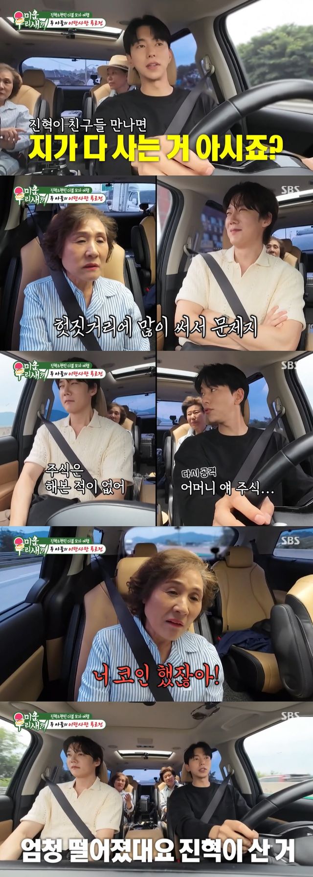 이에 최진혁의 어머니 또한 "경험도 좋은데 그런 거를 하다 보면 내 본업에 영향이 간다"라며 거들었다. 이어 윤현민은 "진혁이 친구들 만나면 자기가 다 사는 거 아시냐. '돈 그만 써' 제가 맨날 그런다. 돈 내는 스타일이다"라며 폭로했다.