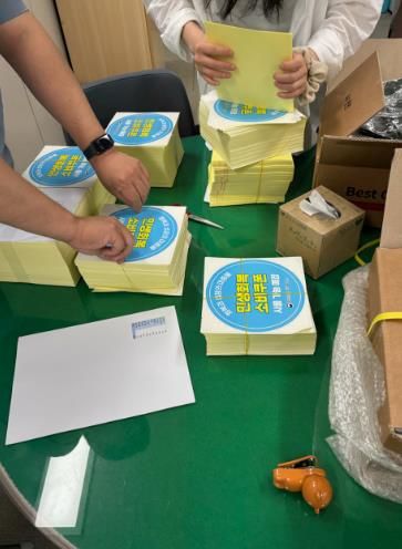 | ▲ 1차 민생회복 소비쿠폰 지급을 위해 경제교통과 직원들이 사용처 안내문 스티커 배부를 준비하고 있다 |