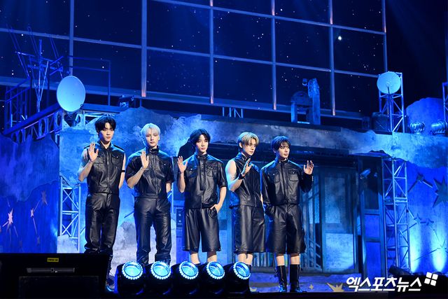 21일 투모로우바이투게더(수빈, 연준, 범규, 태현, 휴닝카이)는 서울 동대문구 경희대학교 평화의전당에서 네 번째 정규 앨범 '별의 장: TOGETHER' 발매 기념 쇼케이스를 개최했다.
