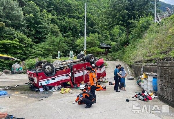 뉴시스 보도에 따르면, 이날 사고는 벌집을 제거하기 위해 출동 중이던 소방차가 언덕에서 후진하다 뒤집힌 것으로 보인다.