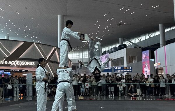 뉴시스 보도에 따르면, 태권도진흥재단은 인천국제공항공사와 업무협약을 통해 9월13일까지 매주 금요일과 토요일 인천공항 제2여객터미널 면세구역 동편 광장에서 태권도 기본 기술을 응용한 '위대한 태권도' 시범 공연을 실시한다.