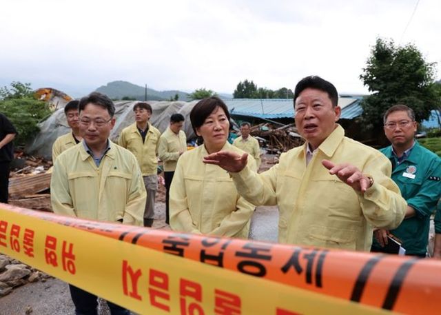 [와이뉴스] 기록적인 폭우로 산사태와 축사 침수 피해가 발생한 경기도 가평군 일대를 21일 오전 송미령 농림축산식품부 장관이 찾았다. 현장을 찾은 송 장관은 “재난은 신속한 피해복구가 생명”이라며 피해 농가의 애로사항을 청취하고 응급 복구 및 방역 대책을 점검했다.