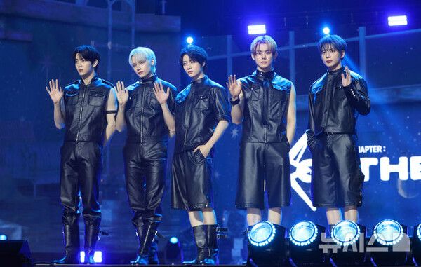 투모로우바이투게더는 21일 서울 경희대학교 평화의 전당에서 열린 네 번째 정규 앨범 '별의 장: 투게더(TOGETHER)' 발매 쇼케이스에서 "음악적으로나 비주얼적으로나 한 단계 진화한 모습을 보여드리기 위해 치열하게 준비했다"며 컴백 소감을 밝혔다.