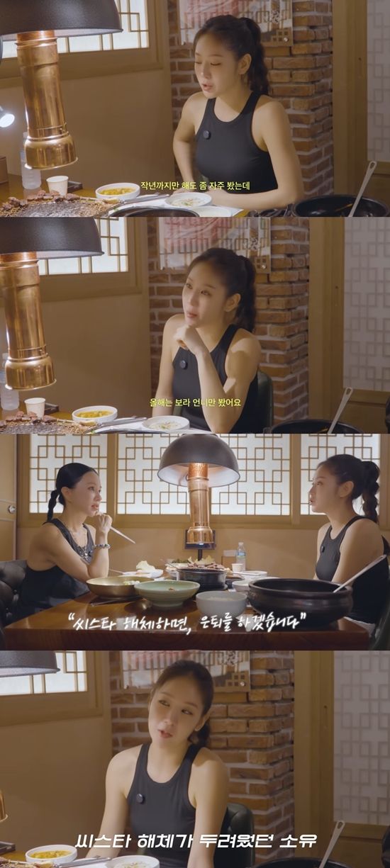 이어 엄정화가 "너희가 해체를 했다. 그땐 어땠냐"라고 질문하자, 소유는 "저는 씨스타가 없으면 저도 없는 것 같았다. 회사에서 계약 얘기를 했을 때 저는 '씨스타 해체하면 은퇴하겠다'라고 말했다. 씨스타가 없으면 제가 없어질 것만 같은 느낌으로 무서웠다"라고 말했다.