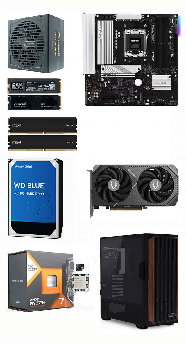 그래픽카드는 게임과 콘텐츠 제작 양쪽으로 무난하고 가성비가 높은 ZOTAC GAMING 지포스 RTX 5060 Twin Edge OC D7 8GB로 고정했다. 가벼운 콘텐츠 위주로 제작하고 게임 편의성을 더 생각하는 사용자도 있을 수 있으므로 SSD의 용량을 1TB로 놓고 줄인 대신 고화질 영상 저장을 위한 HDD의 용량을 4TB로 줄였다. 전원공급을 위한 파워서플라이는 마이크로닉스 Classic II 풀체인지 800W 80PLUS브론즈 ATX3.1로 골랐다. 이후 그래픽카드를 업그레이드해도 즉각 대응할 수 있도록 짜놓은 구성이다.