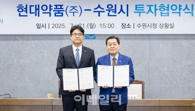 21일 이재준 수원특례시장과 이상준 현대약품 대표는 용인시 기흥구와 경기도경제과학진흥원에서 각각 운영 중인 신약연구소 2곳을 수원 광교로 통합하는 내용의 투자협약을 체결했다. 수원시는 이번 연구소 통합·이전으로 연구개발 효율성을 높이고, 양질의 일자리 창출과 지역경제 활성화에도 기여할 것으로 기대하고 있다.