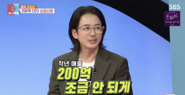 2018년 100억원을 넘어선 지난해 매출은 200억원 가량 됐다고. 최필립은 “열심히 영업도 뛰고, 경기권에 있는 모든 공장은 다 들어갔던 것 같다”며 쑥스러워했다. 이에 MC들은 “진정한 자수성가”라며 놀라워했다.