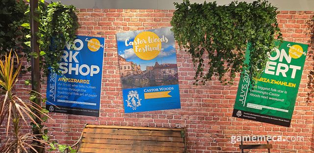 ▲ 입구에 들어서면 녹음과 평화 가득한 캐스터 우즈의 환경과 대비되는 포토월이 등장 (사진: 게임메카 촬영)