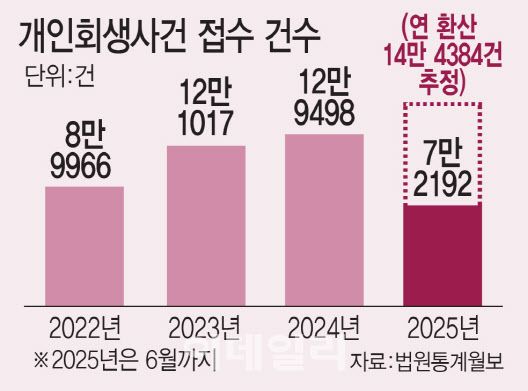 21일 법원통계월보에 따르면 전국 법원의 개인회생 사건 접수는 2022년 8만 9966건에서 지난해 12만 9498건으로 2년간 44% 급증했다. 올해에는 6월말까지 7만 2192건이 접수돼 연간 기준 14만건을 넘어설 가능성이 점쳐진다. 개인회생을 통해 경제적 재기에 성공할 가능성도 높다. 개인회생 개시결정 인용률과 변제계획 인가율은 70~80%대 수준을 보이고 있다. 지난해 기준 약 10만명이 개시결정을 받아 개인회생 제도에 진입했으며(조건부 수혜자), 8만2000여명이 변제계획 인가를 받아 실질적 제도 수혜를 받은 것으로 나타났다. 개인회생 전문 박병철 변호사(법무법인 로얄)는 “저도 20년 전에 파산을 했었는데 이후 마음을 다잡고 새로운 진로를 찾다 변호사가 됐다”며 “바닥에 닿아야 다시 도약할 수 있다”고 말했다.