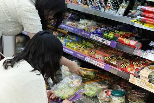 편의점 간편식 코너를 살펴보는 직장인들 / 뉴스1