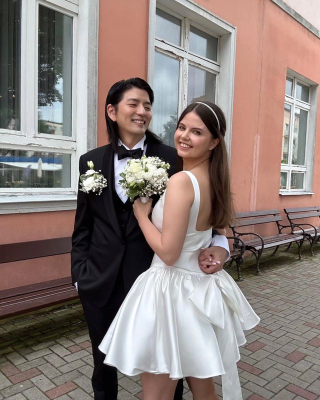 공개된 사진 속 맹기용과 이사벨라는 단정한 웨딩 슈트와 미니 웨딩드레스를 입고 밝은 미소로 서로를 바라보며 행복한 순간을 만끽하고 있다. 서로의 손을 맞잡고 활짝 웃는 모습, 커플 반지를 자랑하는 장면, 그리고 환한 야외에서 꽃다발을 들고 포즈를 취하는 등 결혼식의 따뜻하고 행복한 분위기가 담겨 있다.