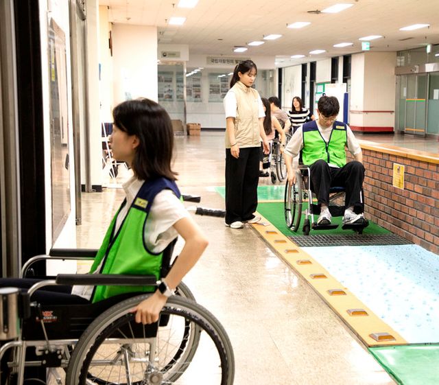 이날 교육은 진에어의 요청으로 진행됐다. 장애 고객들이 공항이나 기내에서 겪을 수 있는 상황을 항공사 직원들이 직접 체험해 봄으로써 장애 고객의 입장과 불편을 이해·공감하고 이를 통해 보다 나은 장애 고객 대상 항공서비스를 제공하고자 하는 취지다.