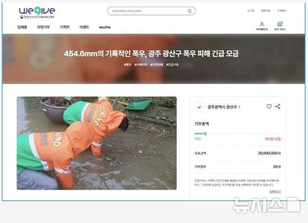 고향사랑기부제 민간 플랫폼 '위기브'는 22일 광주 광산구 수해 피해 복구를 위한 긴급 모금에 나섰다고 밝혔다.