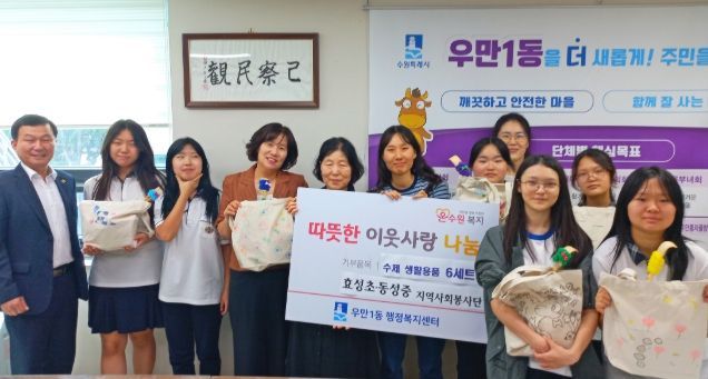김미라 우만1동장은 “학생들의 나이는 어리지만, 소외계층을 향한 따뜻한 관심과 이웃을 생각하는 마음은 그 누구보다 크고 깊다”며 “전달해 주신 생활용품은 꼭 필요한 분들께 소중히 잘 전달하겠다”고 감사의 뜻을 전했다.