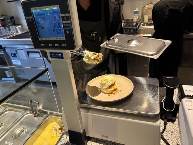케이크 가격은 한조각 분량인 100g당 5000원 후반 대에 형성돼 있다. 더 먹고 싶다면 그램 수만 늘리면 되는 간단한 구조다. 주문과 동시에 퍼주는 방식이라 시각적인 재미도 있고, 본인의 배부름 상태나 디저트 욕구에 따라 섬세하게 조절할 수 있다는 점에서 특히 좋은 반응을 얻고 있다.