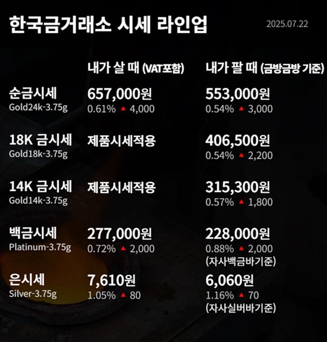 순금(24K) : 매입가 65만 7000원 / 매도가 55만 3000원