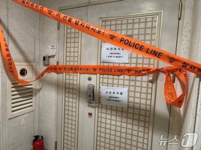 A 씨의 서울 도봉구 쌍문동 집 앞에 사건 조사 중임을 알리는 폴리스 라인이 설치돼 있다. / 뉴스1