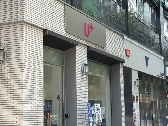 서울 모처의 SK텔레콤(우)과 LG유플러스(좌) 대리점 전경. 사진=강준혁 기자.