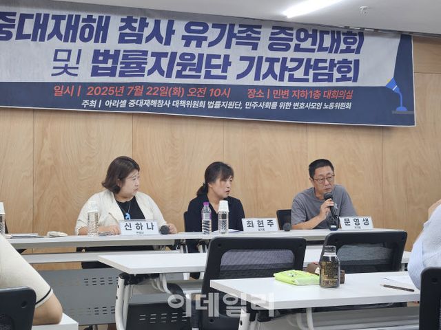 이들은 지난해 9월 중대재해처벌법 위반 혐의로 기소된 아리셀 측이 법정에서 변명만 늘어놓는다며 억울한 마음을 토로했다. 유가족인 최현주씨도 이날 기자회견에 나와 “남편은 연구소장이었고 박중언 본부장과 인간적인 관계도 있었다”며 “(아리셀 측이) 사고를 일부러 내지는 않았을 것이고, 제정신이 아니겠다고 생각해 사고가 일어난 날에는 다른 유가족한테 ‘기다려보자’고 얘기했다”고 했다. 이어 “그때 나한테 사과를 하고 안아주고 울었더라면 여기까지 오지 않았을 것”이라며 “유가족을 대하는 태도에서 인간적인 배신감을 느꼈다”고 분노했다.