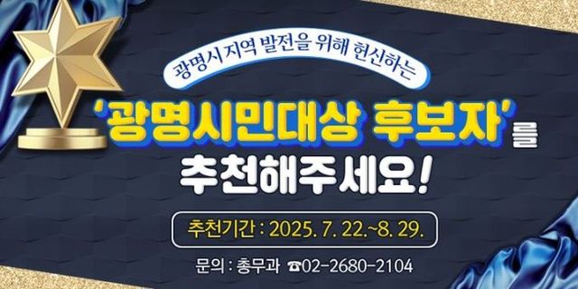 [와이뉴스] 광명시는 오는 8월 29일까지 ‘제37회 광명시민대상’의 주인공을 찾기 위해 후보자를 추천받는다.