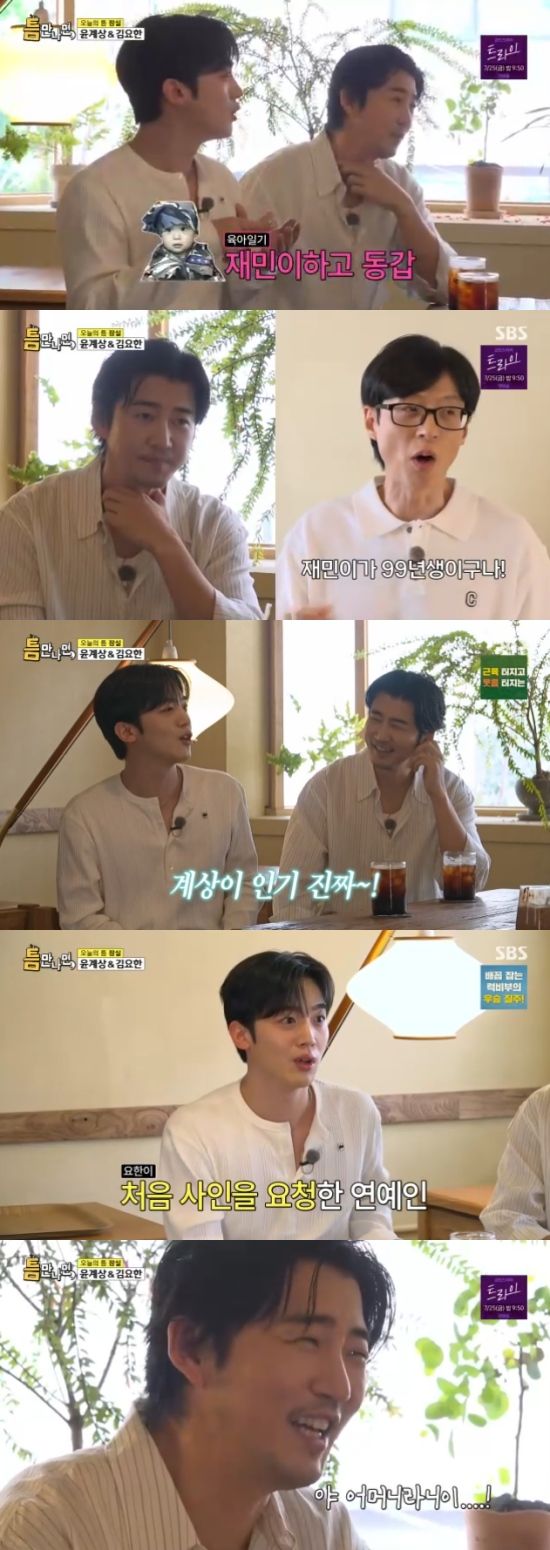 또 김요한은 나이를 묻자 "1999년생이다. 윤계상 선배님이 데뷔할 때 태어났다"고 했고, 윤계상은 "재민이랑 동갑이다. 재민이가 1999년생"이라고 했다.