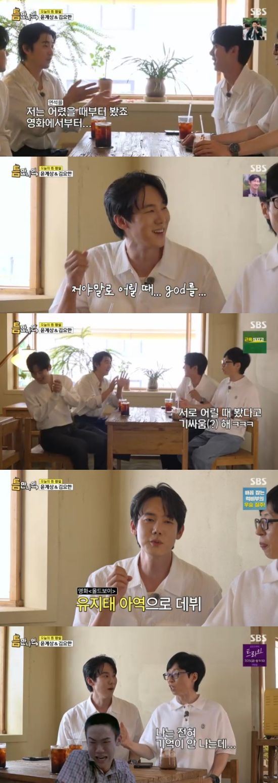 윤계상은 유연석의 데뷔작 '올드보이'를 언급하면서 "연기를 엄청 잘하시지 않았냐. 빡빡머리가 기억에 남는다"고 했고, 유재석은 "그걸 어떻게 기억을 하냐. 나는 전혀 모르겠다. 유지태 씨밖에 기억이 안 난다"고 말해 유연석을 서운하게 만들었다.