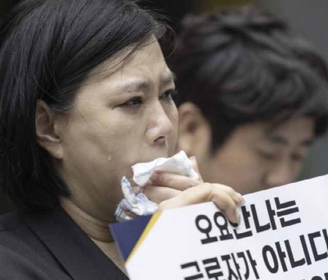 유족은 근로기준법상 근로자로 인정되지 않는다는 노동부의 결과에 “유가족의 가슴에 대못을 박는 결정”이라고 오열했다.