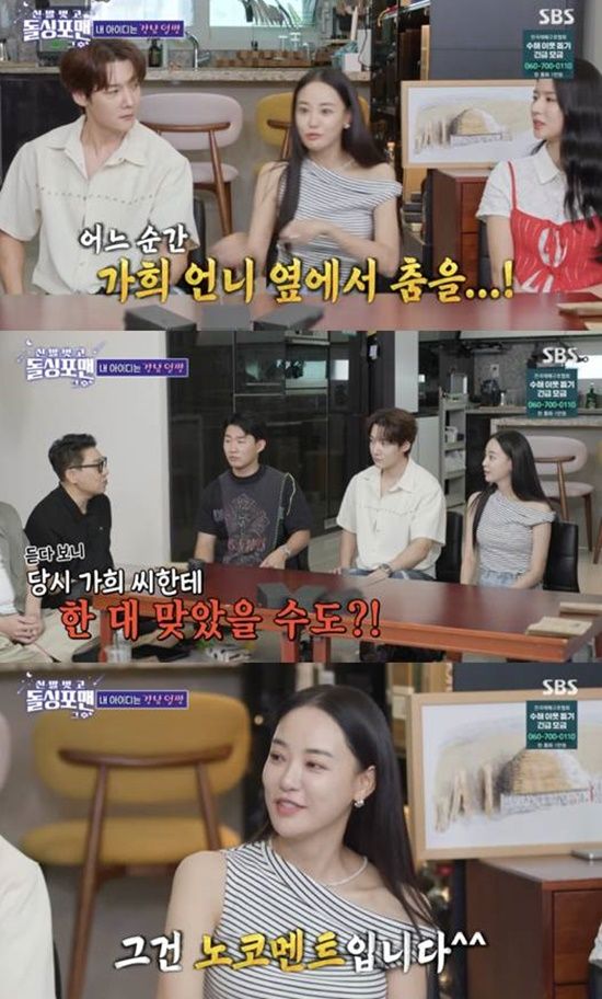 이를 듣고 있던 이상민은 "그러면 당시 가희 씨한테 한 대 맞았을 수도 있다. 그룹에서 춤 담당은 그런 것에 굉장히 신경을 많이 쓴다"고 말했고, 이에 이주연은 "그건 노코멘트다"라고 말을 아껴 웃음을 전했다.