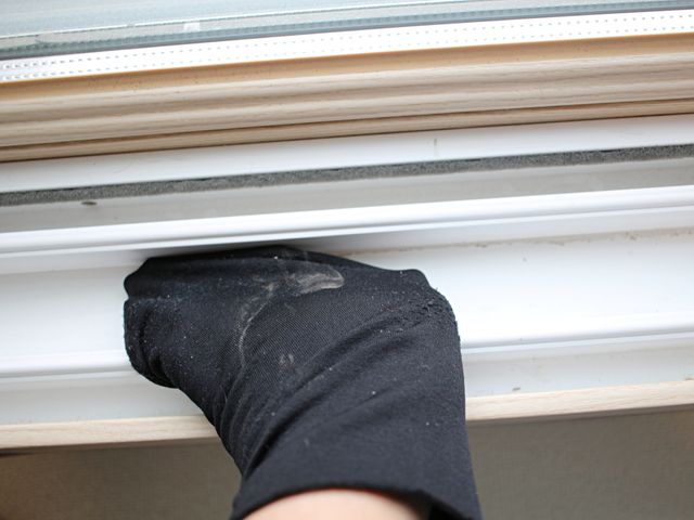 스타킹을 손에 장갑처럼 착용하고 창틀을 닦아주세요.
