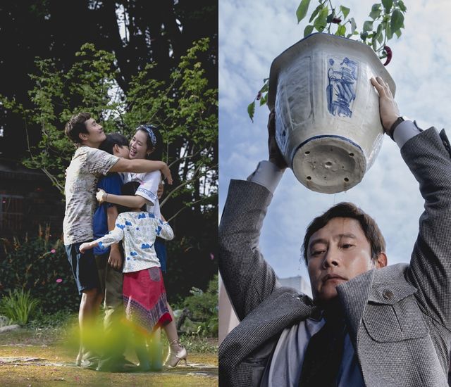 만수가 마당에서 아내 미리(손예진)와 두 아이를 끌어안고 있는 스틸은, 한때 화목하고 평화로웠던 가족의 순간을 포착하며 따스한 분위기를 전한다. 또한 화분을 높이 든 채 아래를 응시하고 있는 만수의 서늘한 표정은, 해고 이후 벼랑 끝에 몰린 그가 겪게 될 변화를 예고하며 강한 호기심을 자아낸다.