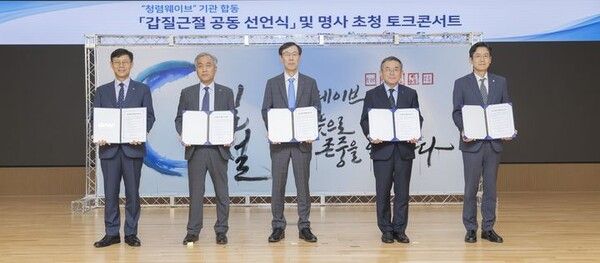 이날 선언식은 갑질 근절을 주제로 한 캘리그라피 퍼포먼스로 시작을 알렸다. '청렴웨이브' 소속 기관장들은 공정하고 투명한 조직문화 조성 의지를 표명했다.