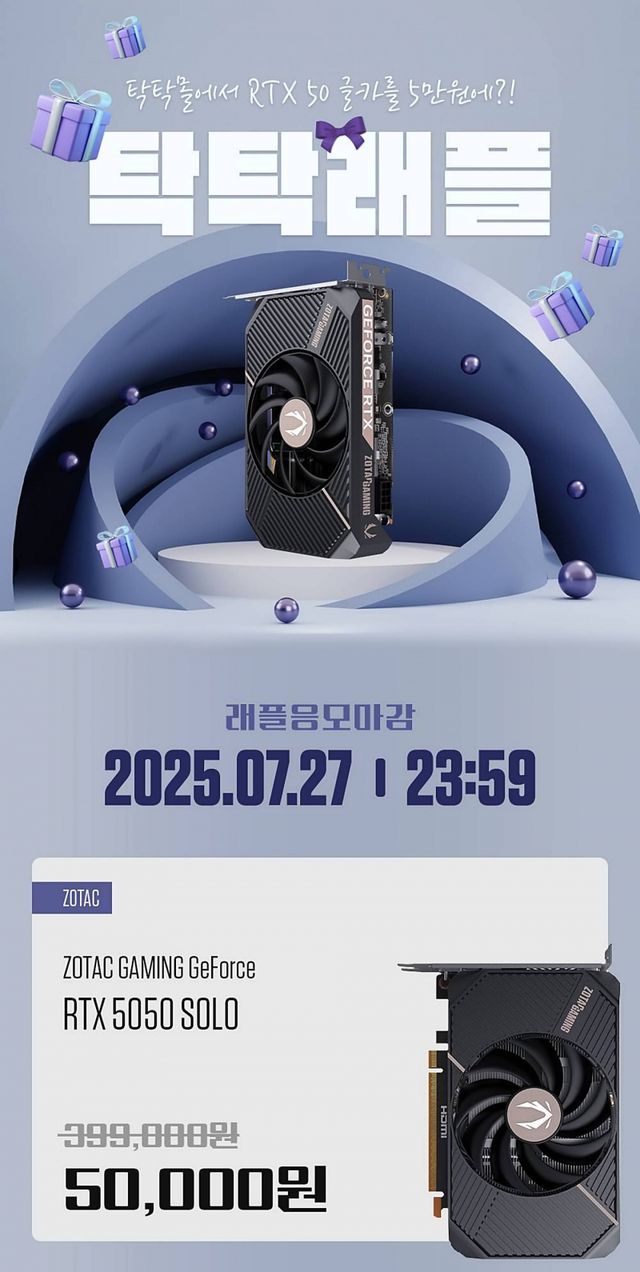 지포스 그래픽카드 전문 기업 조텍코리아가 RTX 5050 그래픽카드를 대상으로 한 래플 이벤트를 연장 진행한다.