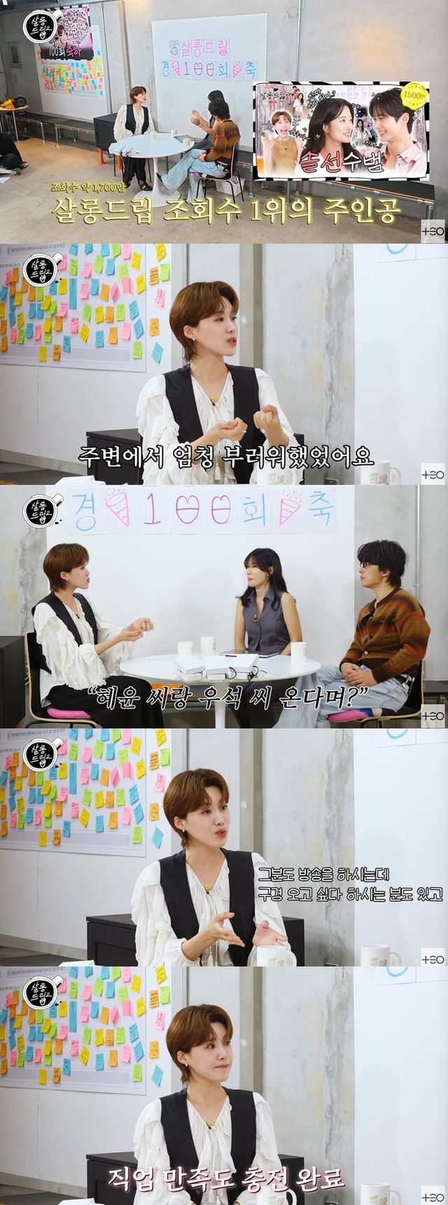 이에 이옥섭 감독은 조회수 대박을 기록한 변우석과 김혜윤의 출연을 언급했다. 그는 "'선재 업고 튀어' 녹화 전에 같이 보고 그게 또 조회수도 높았다. 어땠냐"고 질문했다. 김혜윤과 변우석이 출연한 '살롱드립2' 영상은 두 배우의 달달한 모습과 꽁냥거림으로 당시에도 큰 화제가 된 바 있다.
